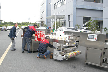 2017年10月20日,我企業生廠的套河粉產品包裝武器裝備終歸順遂卸車發貨的了。本套武器裝備在SMZH-950枕式木箱機的必然上定制開發一套相互投料裝配,進行了河粉相互切料,相互探測,參量精確測量,相互切包等。