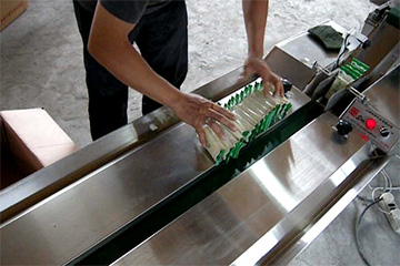 - 本次案例揭示的是條狀物體的包裝——巧克力的包裝。咱們的裝機職員調試好相干參數后,巧克力便在流水線動起來了,包裝速率到達了1個/2秒的效力。...