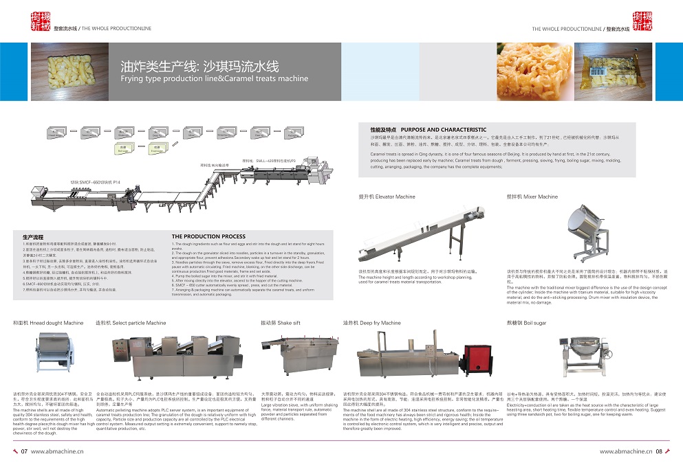 盛產步驟:1.和面 2.醒發 3.壓面 4.篩粉 5.煎炸 6.熬糖三臺 7 .噴糖+混合 8.晉升為機 9.脫模打磨機 9.理料包裝方式機
