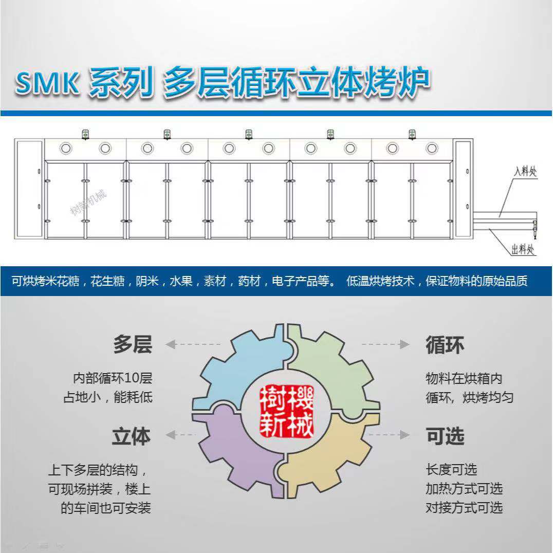 SMK一系列的多層電路板水平烤爐烘烤箱,中中高溫烘烤剛好合適于各業業中,例子米花糖,爆米花,中西中草藥材,藥丸,調制品,飼 料,生果,水果,藍翔塑業有限公司所生產的涂料,光電子副產物等